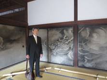2017年11月11日 甥の結婚式に京都へ 弟の長男の結婚式と披露宴に出席するため、家内と二人で週末を京都で過ごしました。学生時代からのお付き合いが実り晴れの日を迎えました。弟とはお互いに所帯を持ってそれぞれの土地で暮らしましたから顔を合わせることは少なく、弟の家族と話をする機会もめったになかったのですが、心の絆はずっとつながっていて、伯父としても大変嬉しいことです。 せっかくの京都なので結婚式前日に京都に入り、家内と一緒に妙心寺、相国寺、建仁寺の天井雲龍図巡りをしました。雲龍図はそれぞれみごとで、狩野探幽、狩野光信、小泉淳作の絵にかける想いと気迫が龍に乗り移っているかのような印象を受けました。建仁寺では撮影が許されていたので、雲龍図や襖絵を写真に収めました。庭の見学も楽しみのひとつで、もみじの色付きがとても華やかに写りました。 結婚式当日は早起きして東寺を訪ねました。金堂内の薬師三尊像、講堂内の立体曼荼羅はまさにこの世にはない世界を観ているような気持ちになりました。五重塔のそれぞれの如来様にも手を合わせて東寺をあとにしました。 結婚式場の東山界隈は前日の清めの雨に掃かれた坂道が清々しく、間近かに見える八坂の塔は荘厳でした。その日一組だけの式場は落ち着いていて、お客様には喜ばれたのではないかと思います。甥夫婦に幸多かれと祈りながら披露宴の進行を見守りました。心温まる立派な披露宴でした。 若い夫婦の門出を祝い、京都の古き良き時代に触れて、思い出深い旅行でした。 |