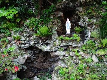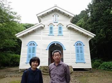 2018年5月13日 長崎と五島の旅2日目 予報どおり朝から雨模様でした。長崎港を7時40分に出港、高速ジェットホイルで1時間20分の船旅で福江港に到着しました。この時すでに小雨が降り始めていました。予約しておいた福江島観光のバスに乗って井持浦教会に向かいました。複雑に入り組んだ海岸線を通って少し開けたところに教会はありました。ちょうどルルド祭りの日で、教会の玄関から中を覗けました。素朴で落ち着いた教会の佇まいに心を打たれました。教会の脇にフランスのルルドに模したマリア像と奇跡の泉がありました。飲めば願いが叶うといわれる水を夫婦でいただきました。 教会を出た頃から雨が本降りに変わり、坂を登りきった大瀬崎の断崖についた時はドシャ降りで、深く掛かった霧に視界が遮られ、晴れれば灯台を見下ろす絶景を観ることはできませんでした。来た道を戻ると雨は小ぶりになり、次に日本一美しい浜辺といわれる高浜海水浴場を見学しました。傘をさしてしばらく東シナ海を眺めたあと、水之浦教会に向かいました。車窓からの見学でしたが、屋根の上に見えた雨に濡れる十字架は少しさびしげに感じました。観光バスが港に戻ったのは12時40分頃でした。 20人乗りの小さな船に乗って、午後1時前に奈留島に向かいました。途中、久賀島の五輪教会に立ち寄りました。防波堤に船がつけられて、手すりにつかまるようにして上陸しました。歩いてすぐの場所でしたが背中のリュックサックが濡れるような雨が降っていました。明治14年に建てられた教会堂は木造の質素なものでしたが、内部は優しい空気に包まれていました。信仰の深みを覗けたように思いました。ガイドさんに夫婦のスナップを撮ってもらいました。新五輪教会を外から眺めたあと、船に戻って奈留島に向かいました。 奈留島には午後2時40分頃に着きました。港からバスに乗って今回の旅の目的地、江上天主堂を目指しました。小さな峠を越えて海岸線に下る左手に天主堂が見えました。バスを降りて歩き始めた時、ちょうど雨があがりました。神様のご加護があったように感じました。内部の見学はできませんでしたが、クリーム色に塗られた穏やかな建物を一周しました。この天主堂が、家内と早坂久之助を繋いでくれたことに想いを寄せながら20分ほどで見学を終えました。ここでもガイドさんに記念写真を撮ってもらいました。 奈留港を出て、キリシタン洞窟を船上から見学し、若松港で船を降りました。予約していた迎えのタクシーに乗り、若松大橋を渡って中通り島に入り、点在する教会を眺めながら奈良尾港に着きました。お土産をたくさん買って、ジェットホイルに乗り込み五島をあとにしました。午後6時過ぎ、五島の旅を終えました。 |