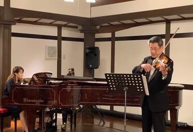 2019年3月31日 音楽発表会 川崎市の小黒恵子童謡記念館で音楽発表会がありました。私もビオラで参加することができました。小さな子供さん達がピアノ曲を弾いたあと、爺さんの順番がまわってきました(笑)。 私はRaff のカヴァティーナを弾きました。バイオリンの曲をビオラでも演奏できるように編曲された楽譜を使いました。レッスンを一度受け、前々日にピアノ合わせをしただけでしたが、木のホールの響きに助けられ、素晴らしいピアノ伴奏のもとで気持ちよく演奏することができました。ベーゼンドルファーのピアノは奥深くて優しい音色でした。 オーケストラや弦楽合奏は長く続けて来たものの、ビオラを一人で弾く機会は初めてでした。貴重な機会を与えていただけたことに感謝するばかりです。 演奏のあと、大先輩のお孫さんからきれいな花束をいただき、本当に感激しました。 |