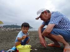 2020年7月25日 江ノ島海岸 東京オリンピックのために設定された4連休、大会が延期になったのは残念ですが、この機会に孫を連れて娘が里帰りしました。梅雨明けが遅れてお天気は良くありませんでしたが、おかげでアウトドアを楽しむことができました。 今年2度目の江ノ島海岸、日除けのテントを広げて孫と一緒に砂遊びをしました。新型コロナウイルスの影響で遊泳は禁止されていましたが、密になるほどの人出もなく、のんびり1時間ほど撒いては消える海の水を眺めて遊びました。いろいろな貝殻を拾い集めました。自然に触れて楽しそうに遊ぶ孫を愛おしく思いました。 少し早めのお弁当を食べようと用意し始めたとき、突然雨が降り出しました。すでに南の空は真っ黒でした。急いでテントを片付け、車に戻りましたが、あっという間に大雨になってしまいました。しかたなく、お弁当を車の中で食べました。それでも孫は大いに楽しそうでした。 いろいろな経験をして孫が大きくなるのだろうと思うと、これもまた良しの1日でした。 |