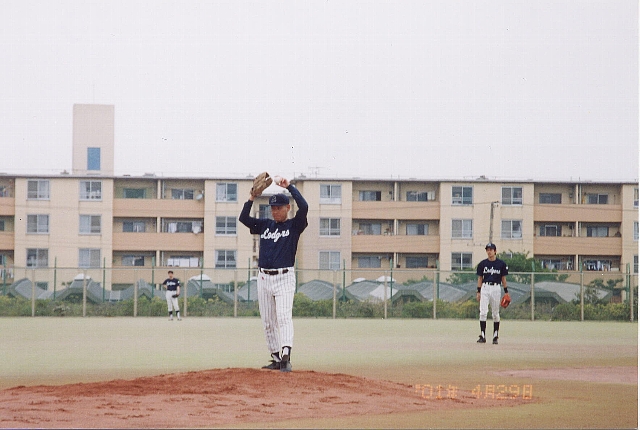 力投するロジャーズの小林投手(背番号 19)47歳ごろ ※60歳で現役を引退しました。
