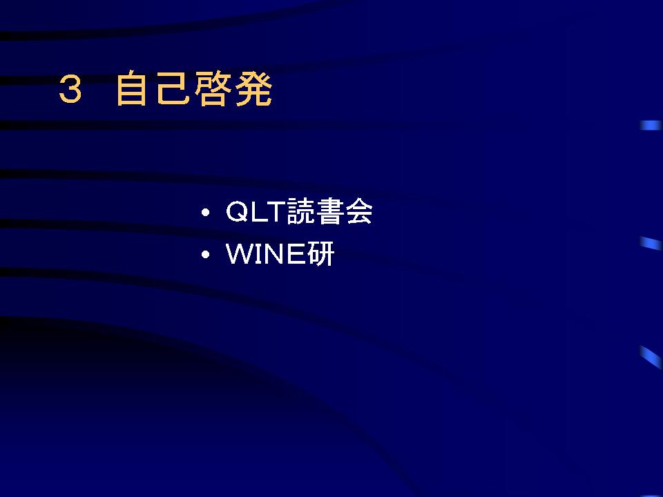環境の波に流されることのないよう、いつでも自己啓発に努めます。 自分の内面を磨くと同時に、周りとのかかわりをより大切にできるような自己研鑽を意識します。 |