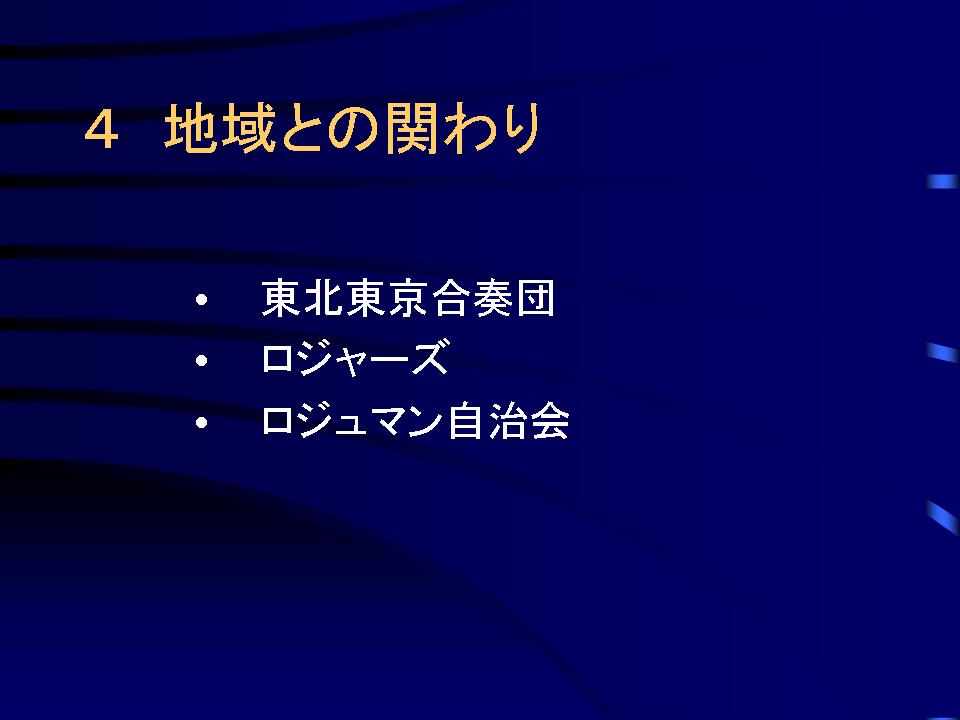 21世紀を迎えるにあたり、出来るだけ遠くに視点 を置いた生き方の規範をまとめてみようと思い立ち、 マイプレゼンテーションを作成しました。 個のあり方と仕事や趣味、地域というような組織と の関わりを見通し、判断あるいは行動の指針を整理 しました。 現在の心境はプレゼンテーションの最後のページ にまとめました。 |